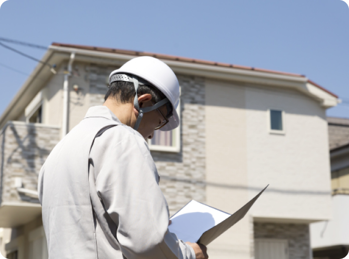 様々な資格を持った熟練スタッフがそれぞれの視点から正確に調査。 確かな知識と経験を持つスタッフがお客様の希望に沿った最適なご提案を行います。高所など危険な場所はドローンを活用した調査も可能です。