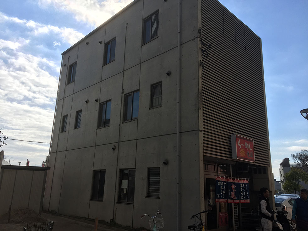 汚れが目立ちはじめた打ちっぱなしのコンクリートに、今までのイメージを保つコンクリート風の塗装を再現しました。