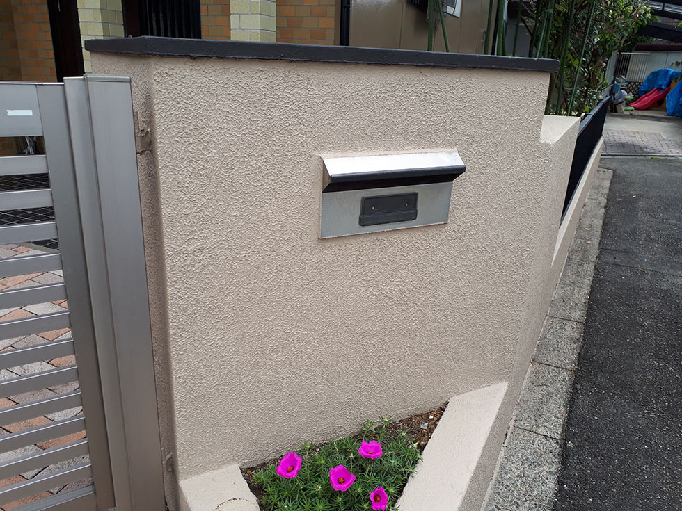 外壁の汚れや塗装のはがれ、石材タイル目地の劣化など、全体的な痛みを回復させるための工事を行いました。外壁と門扉は落ち着いた色合いに、カーポートの鉄部や玄関まわりまで、丁寧に仕上げました。