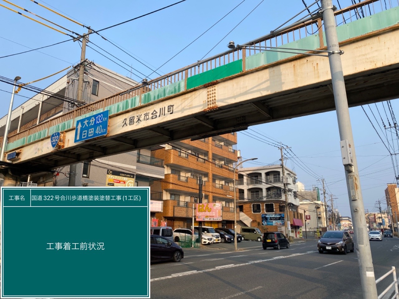 国道322号合川歩道橋の塗装塗替工事をおこないました。